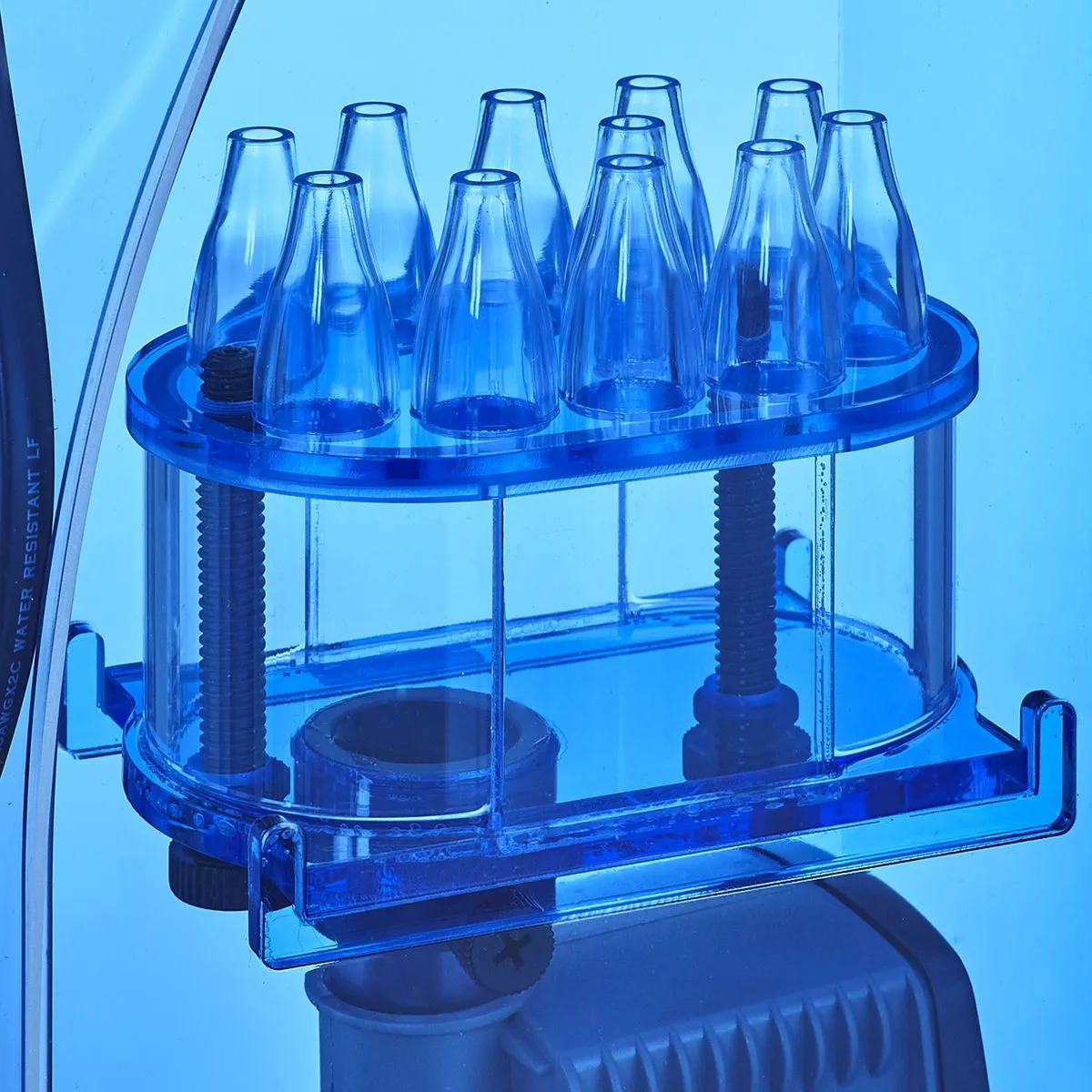 The HOB-1.5 is an upgrade over its predecessor, featuring an enlarged bubble diffuser and reaction chamber that fully harnesses the output of the SHARK 1.0 pump. Custom conical bubble diffusers reduce turbulence inside the chamber and direct water linearly upward toward the collection cup, improving contact time and the consistency of the foam produced.