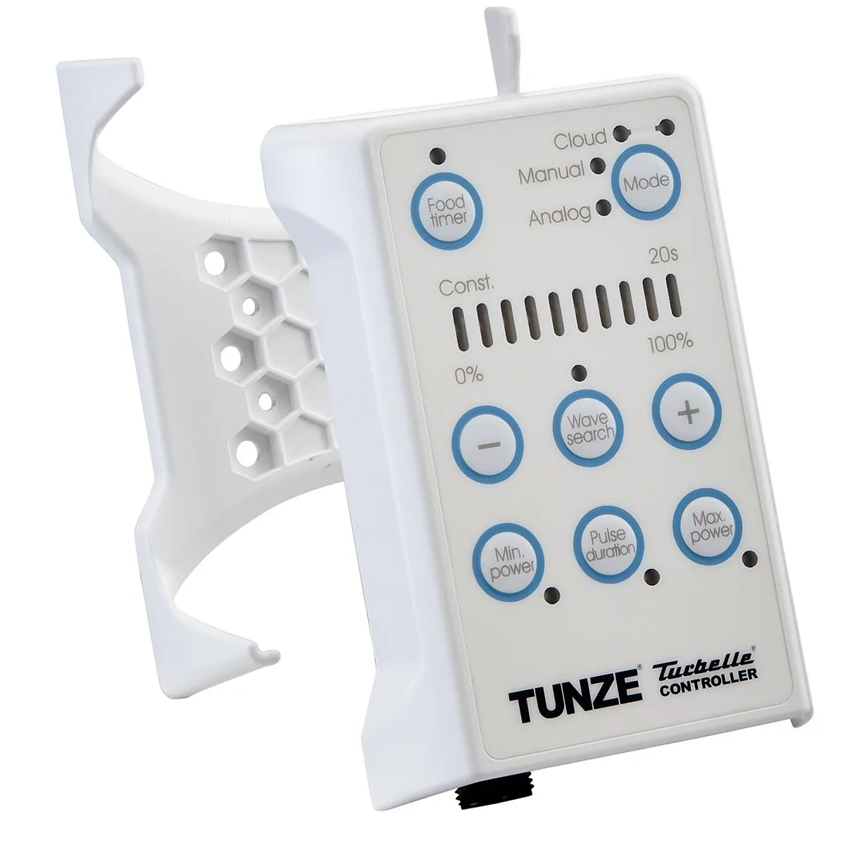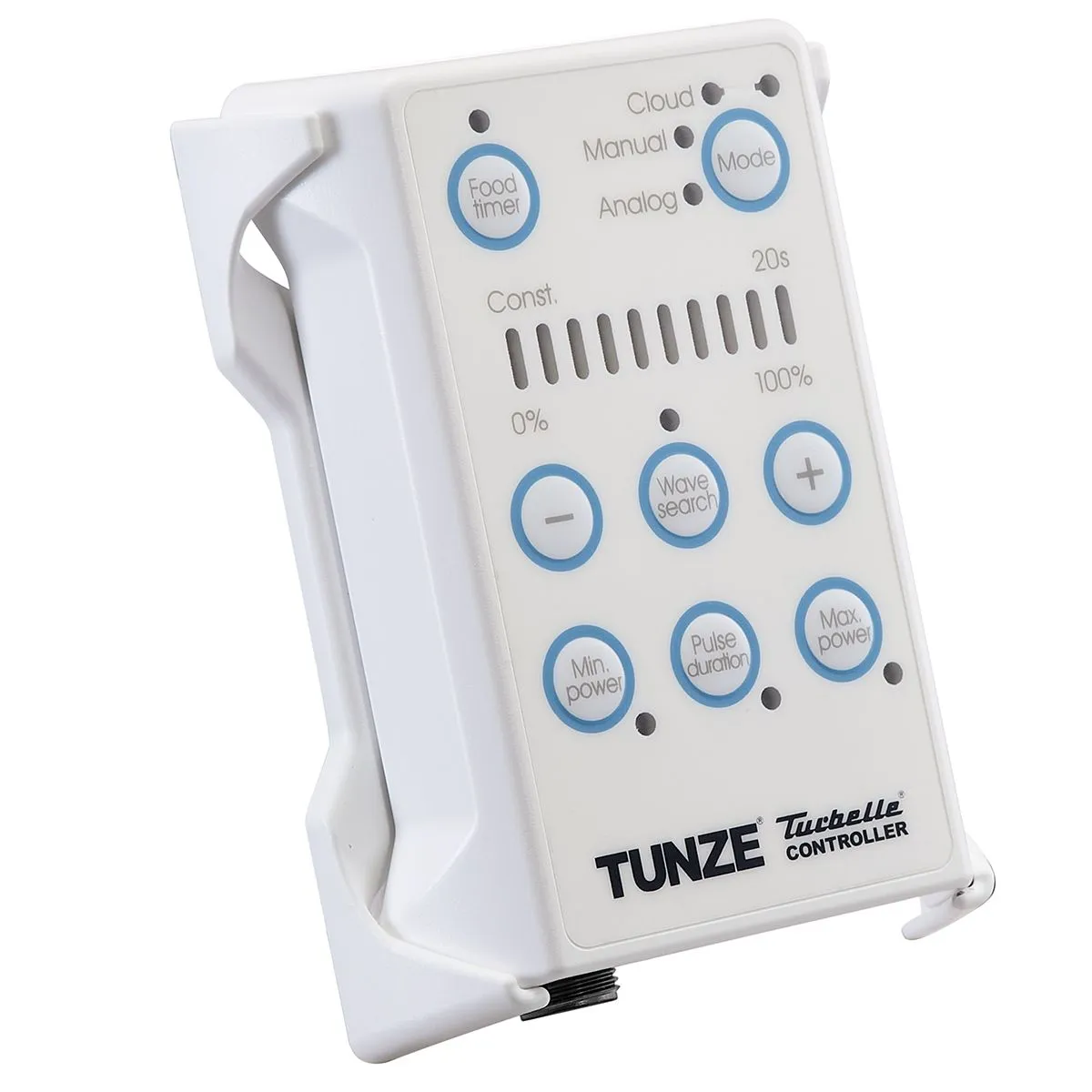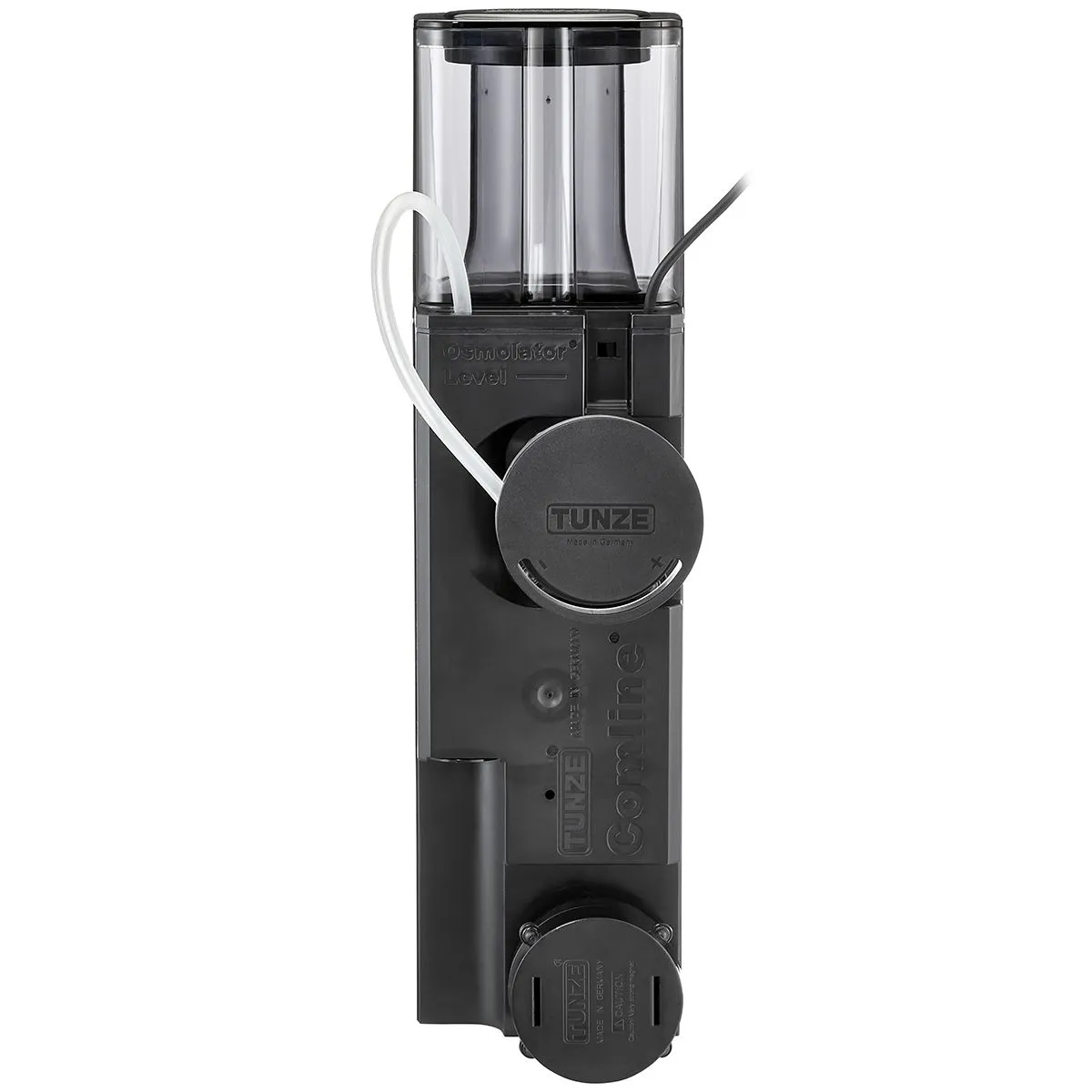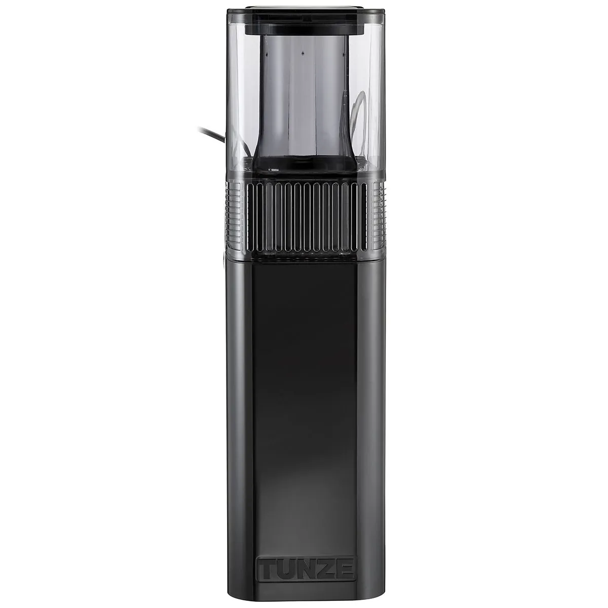 The HUB Edition replaces the previous AC motor with a safety extra-low voltage 12V DC system. The result is noticeably quieter operation, lower energy consumption (just 9W), and full speed control via the included Tunze Controller 7090. Silicone buffers on the skimmer body prevent vibration transfer to the glass, keeping the unit virtually silent in operation.